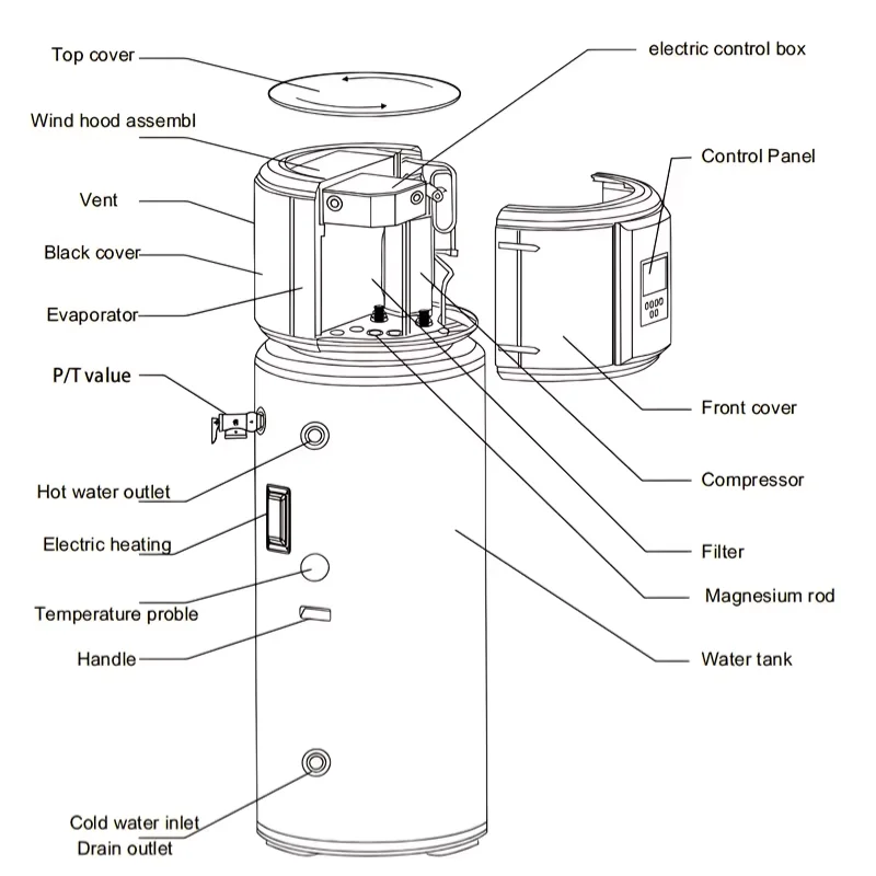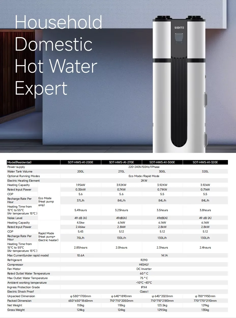 4.5KW R290 All-in-One Air Source Heat Pump Water Heater | High Efficiency Class Energy Efficiency 2-Year Warranty Metal
